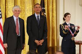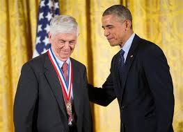Alexandre J. Chorin, of the University of California, Berkeley shakes hands with President Barack Obama after receiving the National Medal of Science during a ceremony in the East Room of the White House…